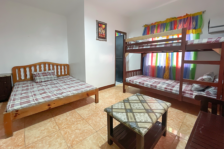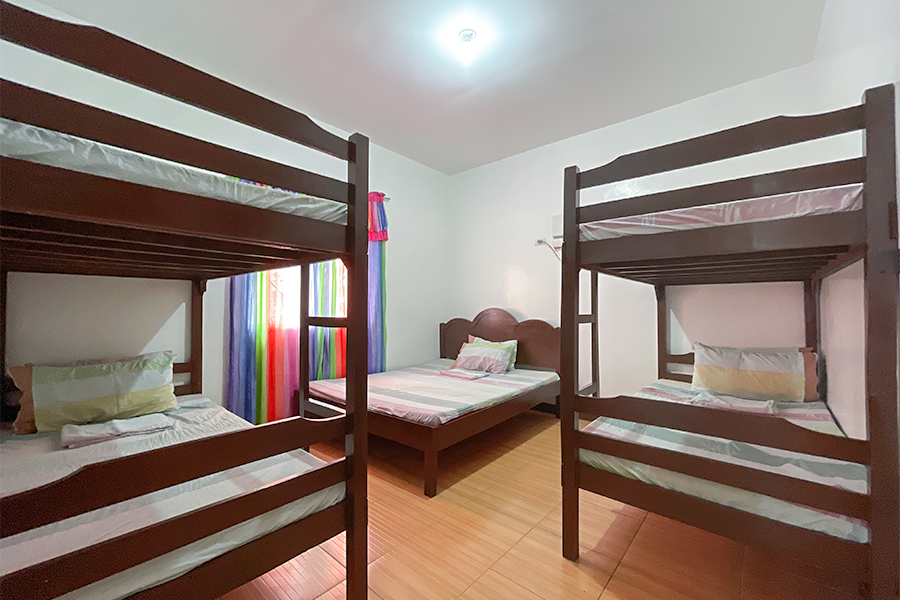 Room is located at the 1st floorRoom size: 71 sqmRoom with 2 double size and 4 double deck bedsGood for 12paxEntrance fee with use of pool included.WindowNon-smoking roomAir-conditioned roomTVElectric FanPrivate BathroomNo Toiletries...