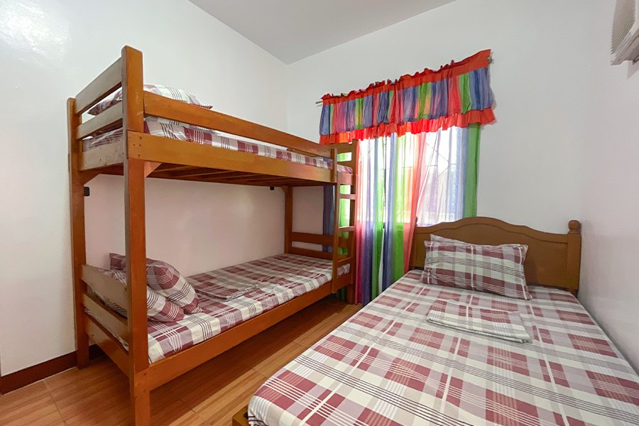 Room is located at the 1st floorRoom size: 33 sqmRoom with 1 double size and 1 double deck bedsGood for 4paxEntrance fee with use of pool included.WindowNon-smoking roomAir-conditioned roomTVElectric FanPrivate BathroomNo Toiletries...