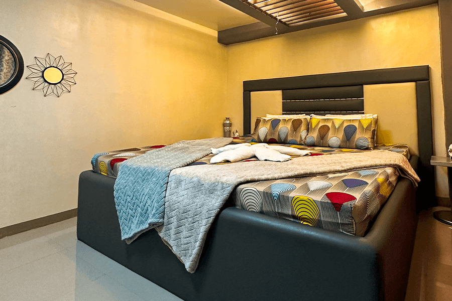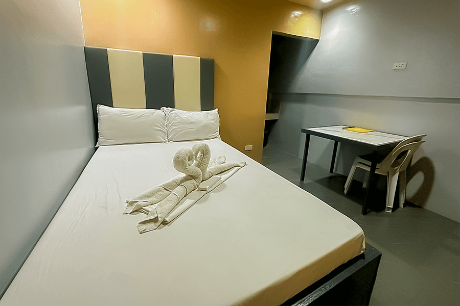 Room with 1 Double Bed.Good for 2 adults and 2 kids below 4 years old.Room size: 9 sqm.Air-conditioned roomIn-room Wi-fi.Flat-screen TVPrivate Toilet and Bath.Bath Towels.Basic Toiletries: Shampoo, body soap, toothbrush, and toothpaste....