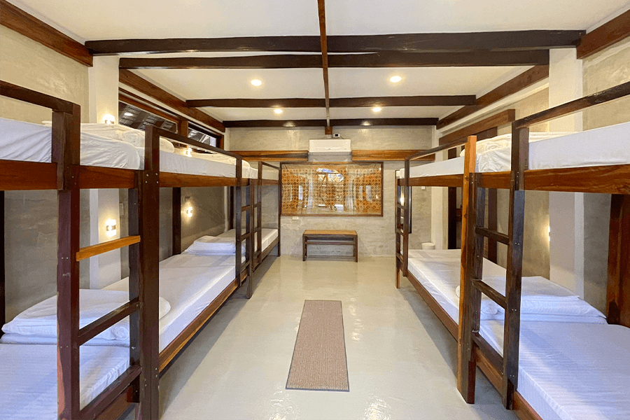 Room with 4 bunk beds (single).Good for 6 adults and 1 kid below 4 years old.Extra pax allowed: 6 adults.Room size: 40 sqm.Air-conditioned room.In-room Wi-fi.Electric kettle.Private Toilet and Bath.Hot and cold showerBath Towels.Basic Toiletries: Shampoo, body soap, toothbrush, and toothpaste....