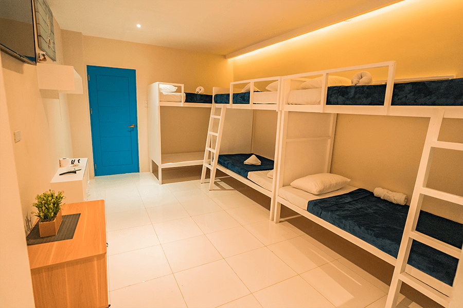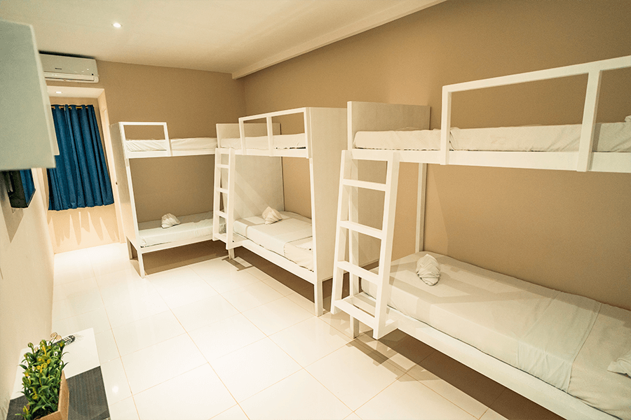 Room with 3 Bunk Beds (single-sized).Good for 6 adults and 1 kid below 3 years old.Room size: 25 sqm.Air-conditioned room.In-room Wi-fi.Private Toilet and Bath.Hot and Cold Shower.Bath Towels.Basic Toiletries: Shampoo, body soap....