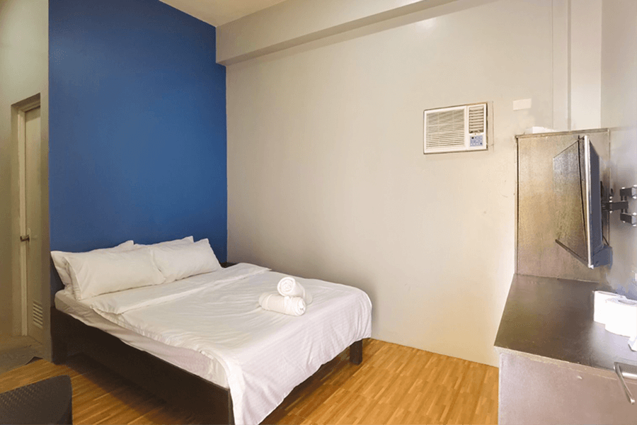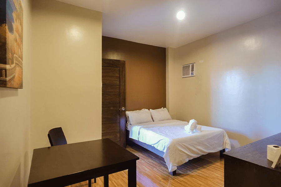Room with 1 Queen Bed.Good for 2 adults and 1 kid below 10 years old.Room size: 20 sqm.Air-conditioned room.Private bathroom.Hot and cold shower.Bath Towels.Basic Toiletries: Shampoo, body soap....