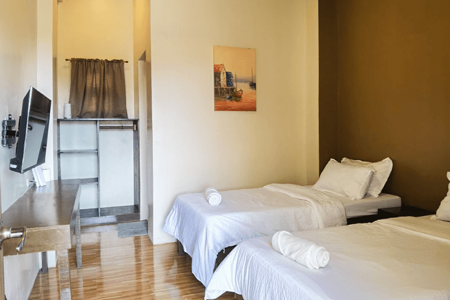 Room with 2 Single Beds.Good for 2 adults and 1 kid below 10 years old.Room size: 15 sqm.Air-conditioned room.Private bathroom.Hot and cold shower.Bath Towels.Basic Toiletries: Shampoo, body soap....