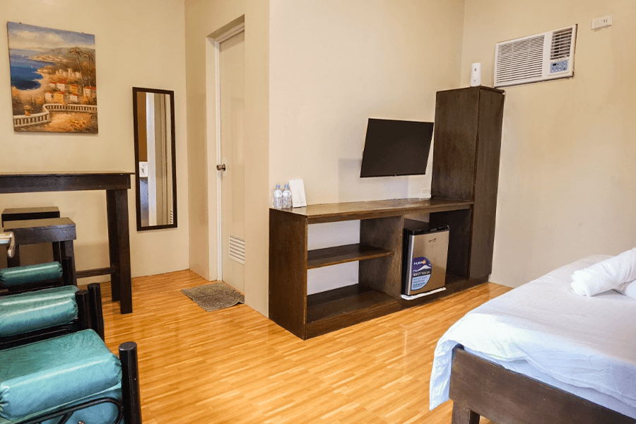 Room with 1 Double Bed.Good for 2 adults and 1 kid below 10 years old.Room size: 18 sqm.Air-conditioned room.Private bathroom.Hot and cold shower.Bath Towels.Basic Toiletries: Shampoo, body soap....