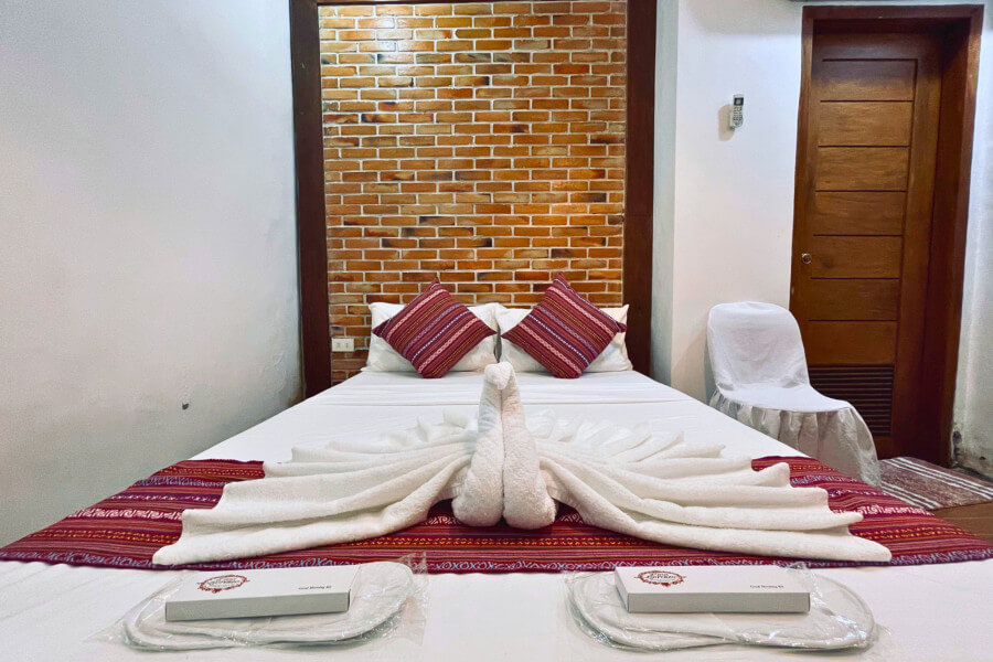 Room with 1 Queen Bed.Room size 18 sqmGood for 2 adults and 1 kid below 5 years old.1 Extra pax ONLY Php 500 (Single sized mattress)2nd FloorAir-conditioned room.Private bathroom.Hot and cold shower.Bath Towels.Basic Toiletries: Shampoo, body soap....