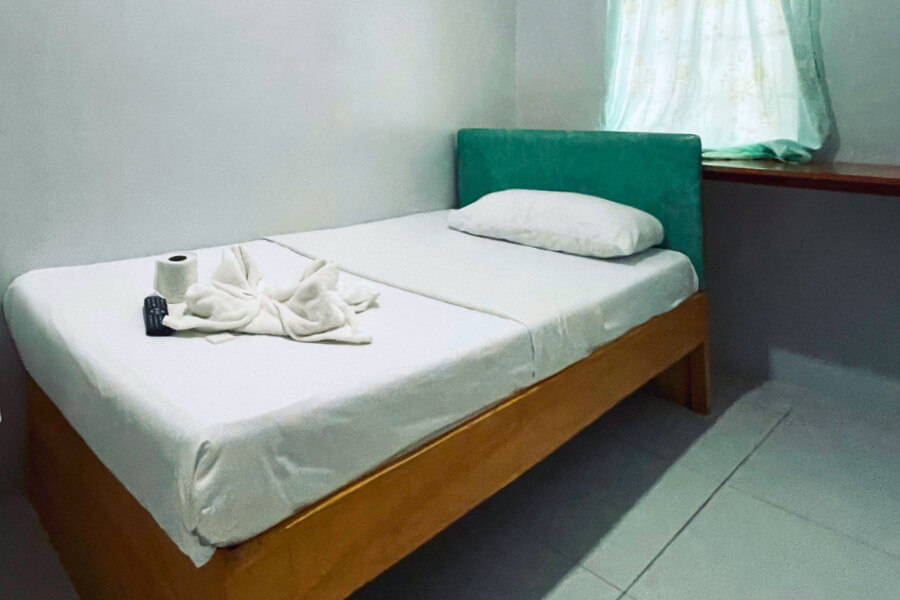Room with 1 Single Bed.Good for 1 adults and 1 kid below 5 years old.Room size: 12 sqm.Air-conditioned room.Private bathroom.Bath Towels.Basic Toiletries: Shampoo, body soap....
