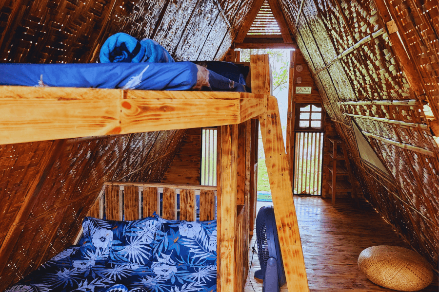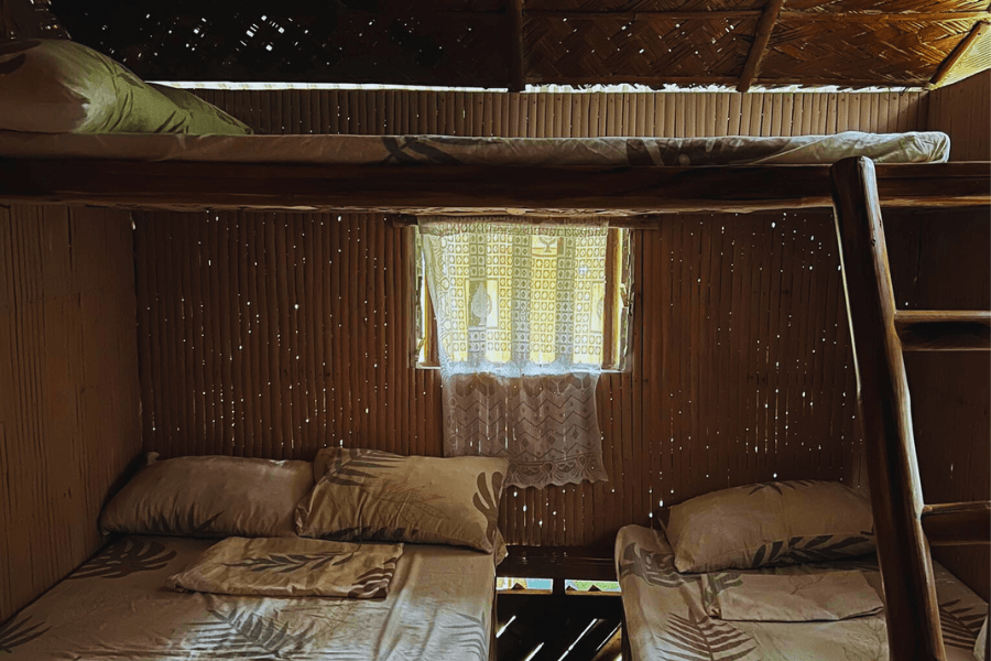 Room with 1 Queen, 1 Single, 1 Double Bed.Good for 2 adults (Max. of 5 adults and 1 kid below 4 years old - Free of Charge)Extra Person Charge: Php 600.00 per person per night - 1 Extra BedRoom size: 400 sqmOpen balcony.Electric fan.Open kitchen with kitchen utensils.Bathroom.Basic Toiletries....