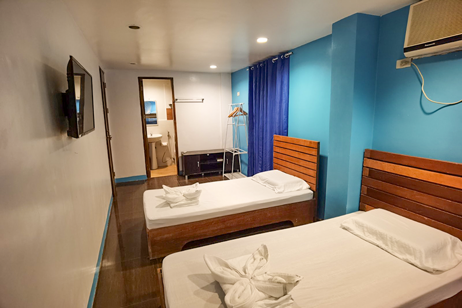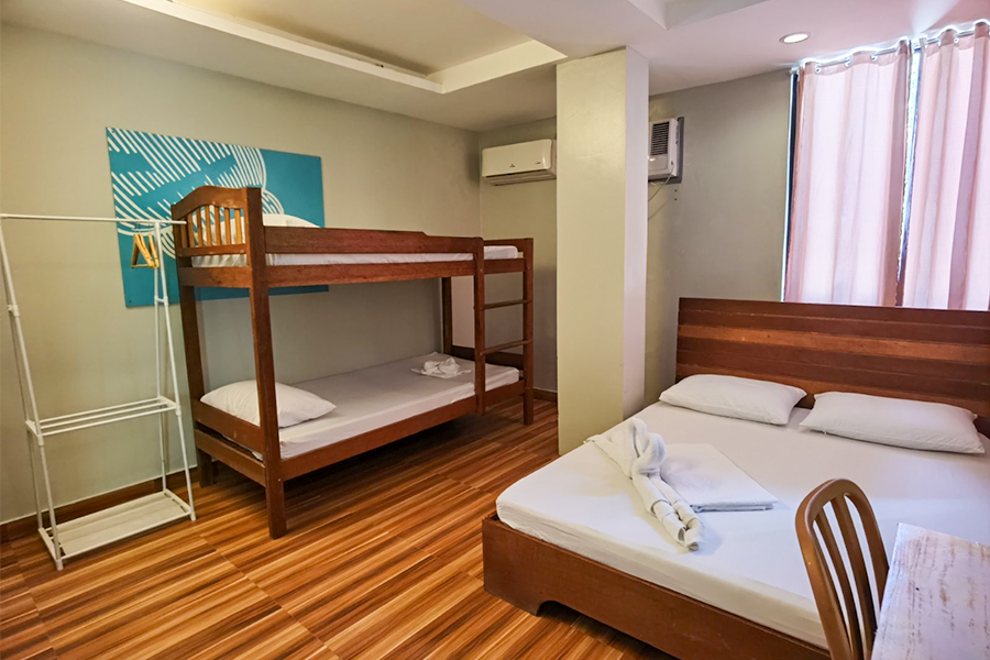 Room with 2 Single Beds, 1 Bunk Bed.Good for 4 adults and 1 kid below 6 years old.Room size: 25 sqm.Air-conditioned and non-smoking room.Hot and cold shower.Private Bathroom....
