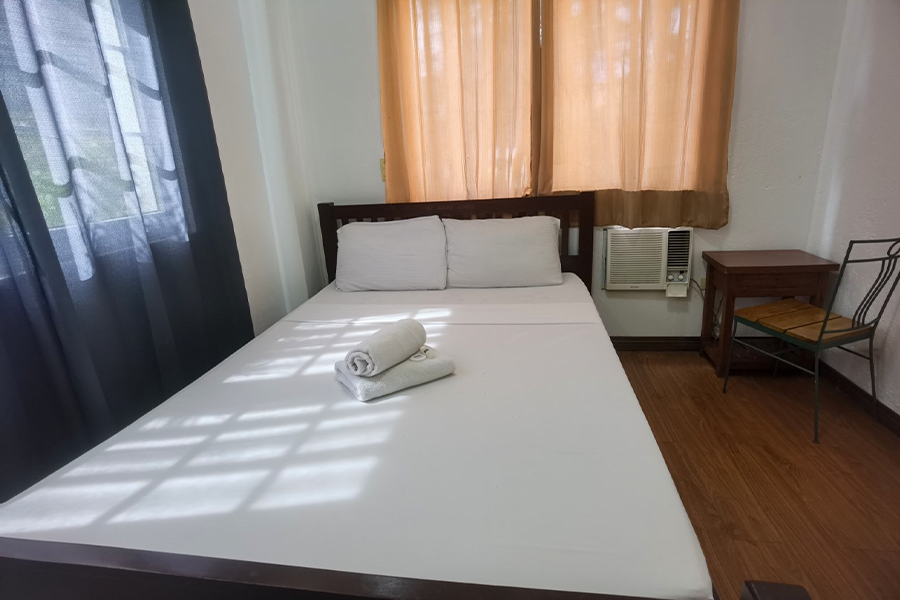 Room with 1 Queen Bed.Good for 2 adults and 1 kid below 6 years old.Room size: 15 sqm.Room location: ground floor.Air-conditioned and non-smoking room.Hot and cold shower.Private Bathroom....