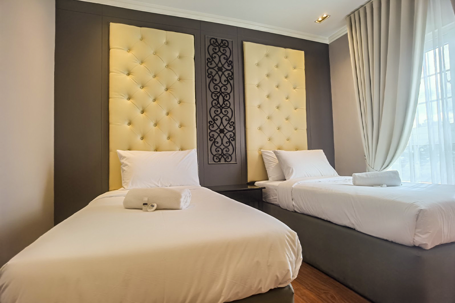 Room with 2 Double Beds, 1 Single Bed.Good for 5 adults and 1 kid below 6 years old.Room size: 25 sqm.Room location: ground floor.Air-conditioned and non-smoking room.Hot and cold shower.Private Bathroom....