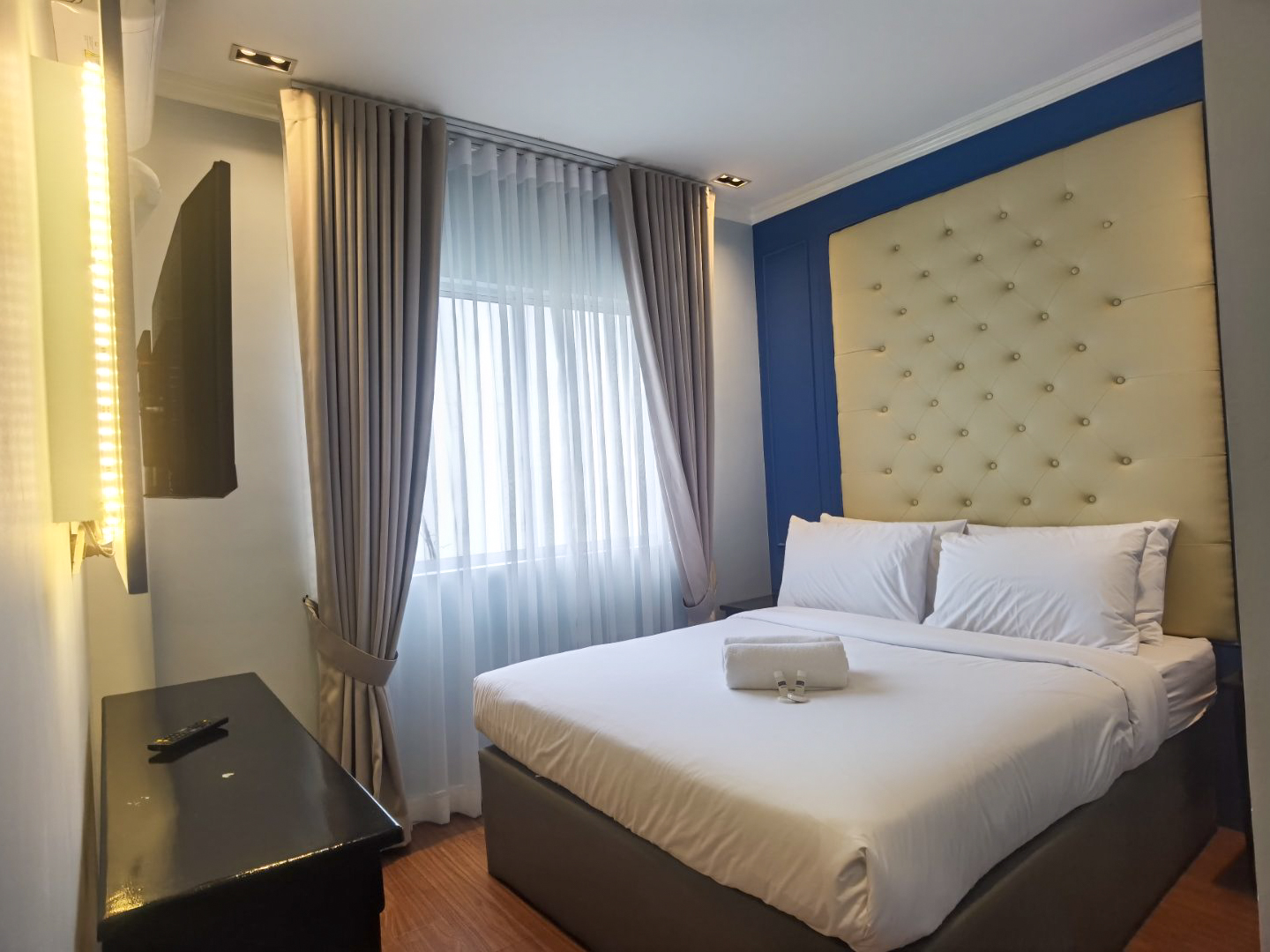 Room with 1 Queen Bed.Good for 2 adults and 1 kid below 6 years old. Allowed 1 extra person.Room size: 15 sqm.Room location: 2nd-3rd floor.Air-conditioned and non-smoking room.Hot and cold shower.Private Bathroom....
