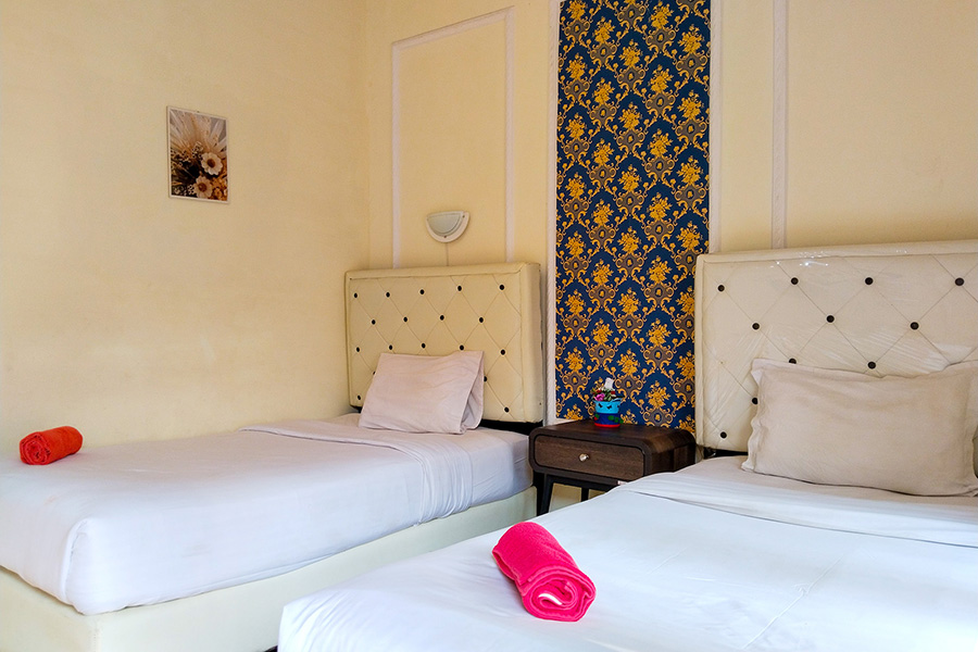 Room with 2 Single Beds.Good for 2 adults and 1 kid below 6 years old.Room size: 20 sqm Room location: ground and second floor.Air-conditioned room.Television.Private bathroom.Hot & cold shower. Basic Toiletries & Towels....