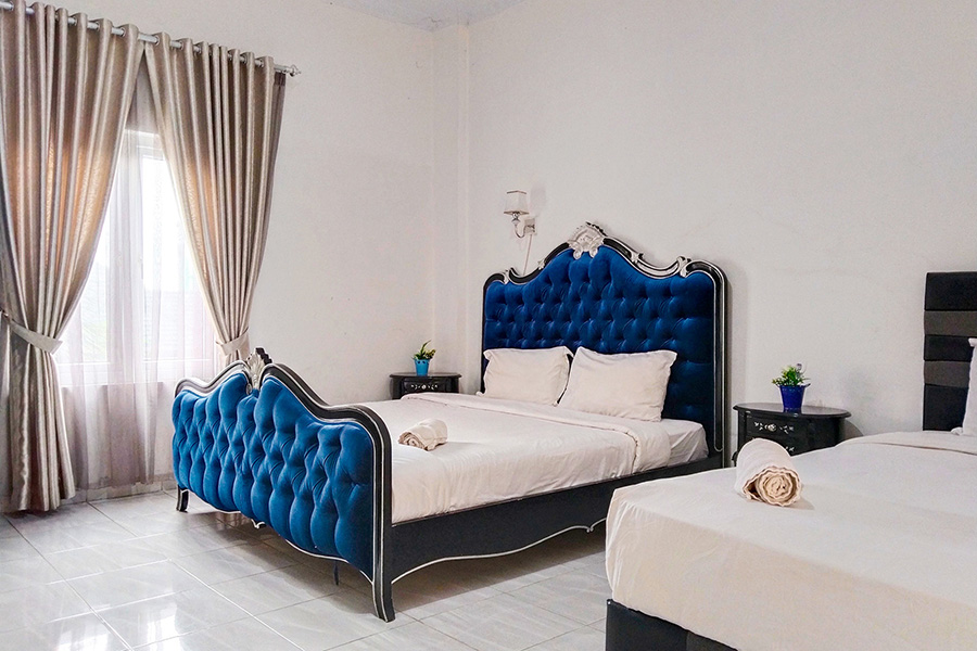 Room with 1 King Bed & 1 Single Bed.Good for 3 adults and 1 kid below 6 years old.Room size: 24 sqm.Room location: ground and second floor.Air-conditioned room.Television.Private bathroom.Hot & cold shower. Basic Toiletries & Towels....