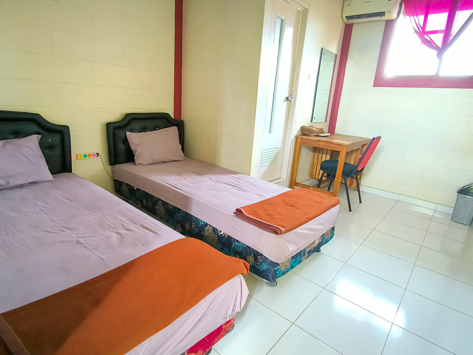 Room with 2 Single Size Bed.Good for 2 adults and 1 kid below 12 years old.Room size: 20 sqm.Room location: ground floorAir-conditioned room.Wardrobe/Dresser.Private bathroom.Hot & cold shower. Basic Toiletries.Towels.Mineral Water....