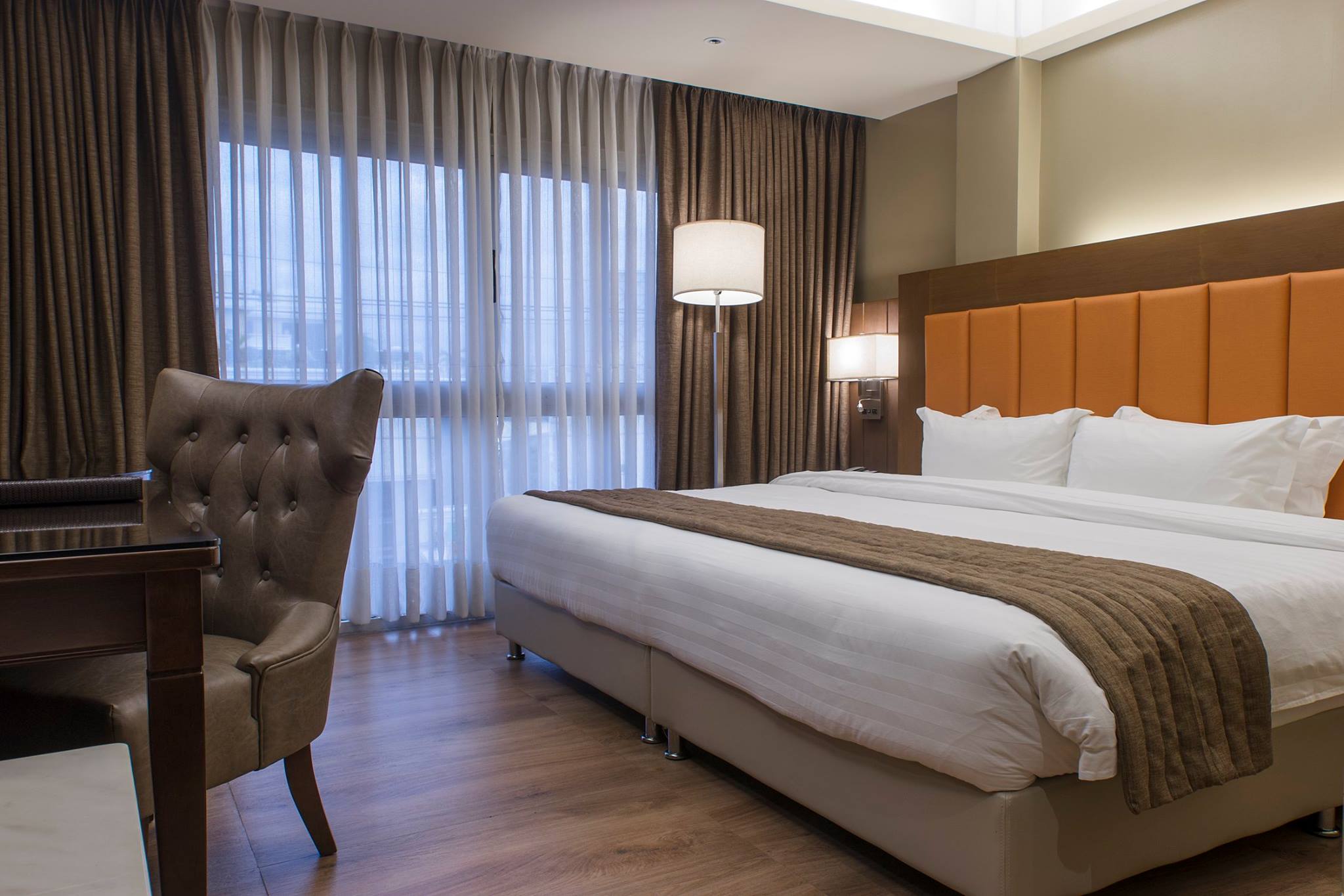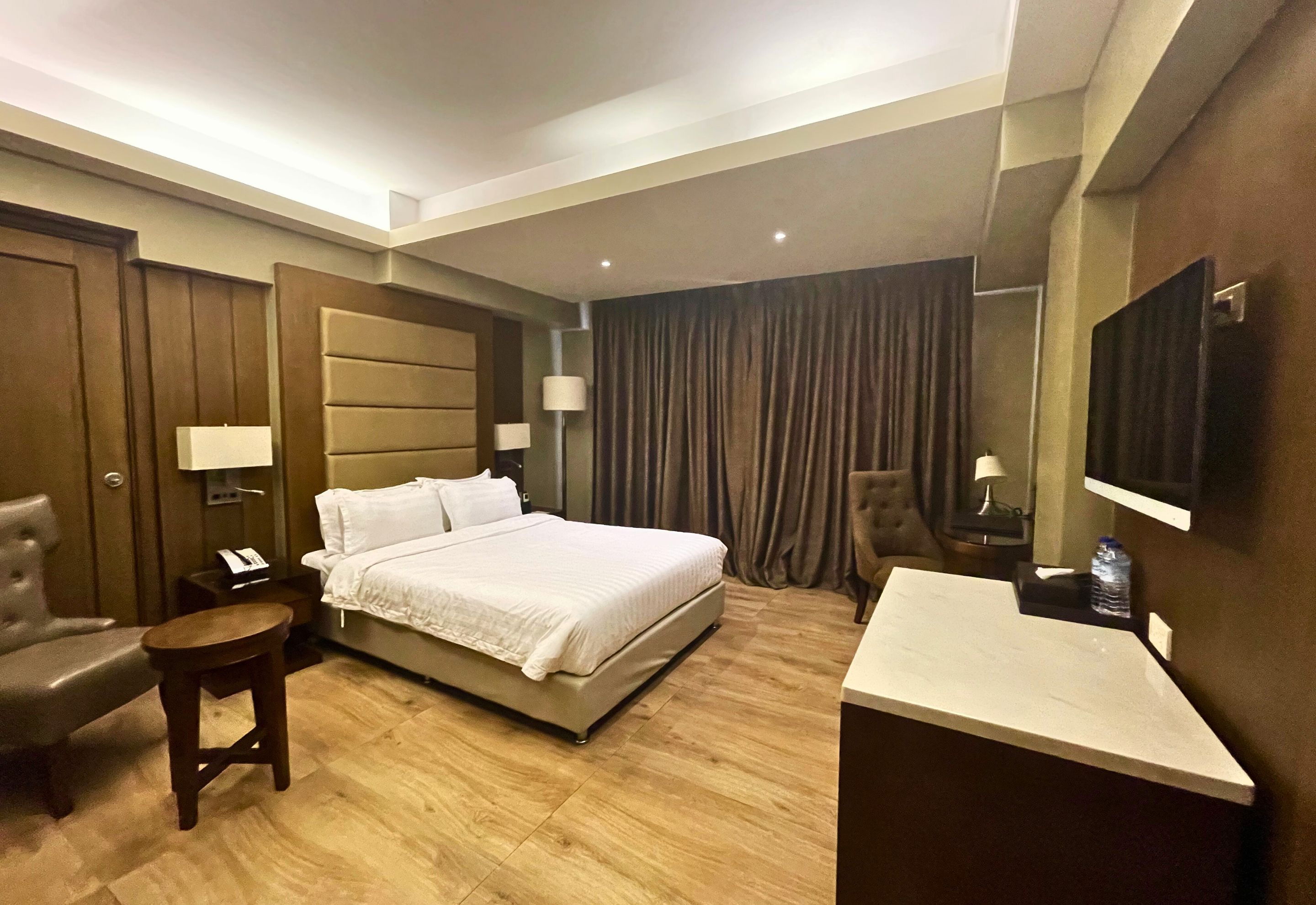 Room with 1 King Size Bed.Good for 2 adults and 1 kid below 6 years old.Room size: 25 sqm.Room location: 2nd-4th floor.Air-conditioned room.Television.Wardrobe/closet.Private bathroom.Hot & cold shower. Table & Chairs....