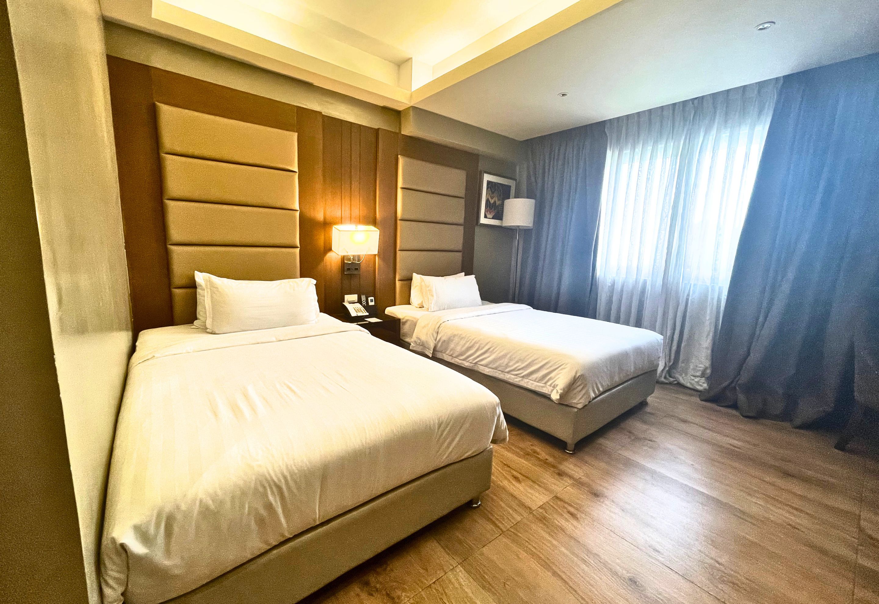 Room with 2 double-size beds.Good for 2 adults and 1 kid below 6 years old.Room size: 25 sqm.Room location: 2nd-4th floorAir-conditioned room.Television.Wardrobe/closetPrivate bathroom.Hot & cold shower. Table & Chairs....
