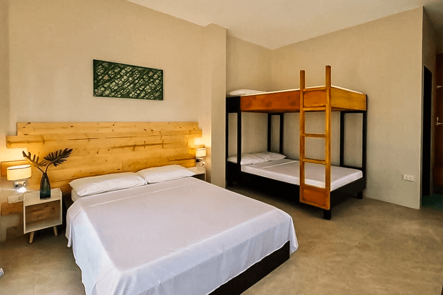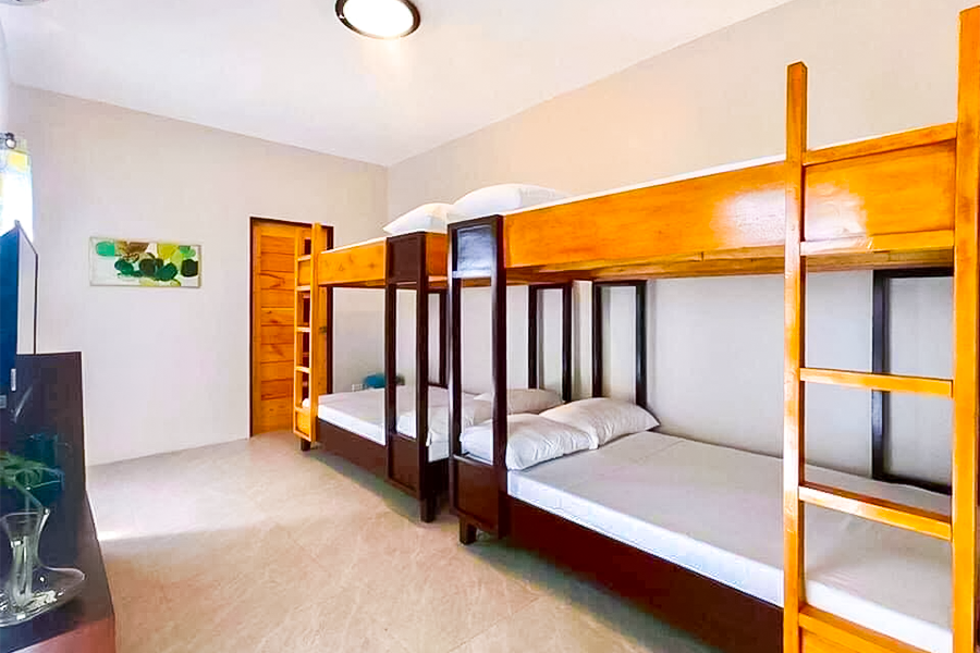 Extra pax is w/ mattressRoom located on the ground floorRoom size: 20-30 sq. mRoom with 1 Double DeckGood for 4 paxPrivate BathroomBasic toiletries: Shampoo onlyBath towelsAir-conditioned roomsCabled-TVHot and Cold ShowerWi-Fi (valid for 2days only)...